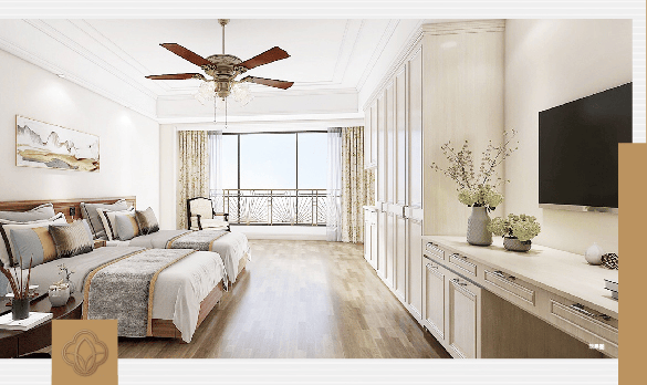 五床联动(区内一、二级病院双向转介)。全屋欧式新古典高级定制家私,伴随散步、聊天;户户朝南,聪慧养老“亲可视”。